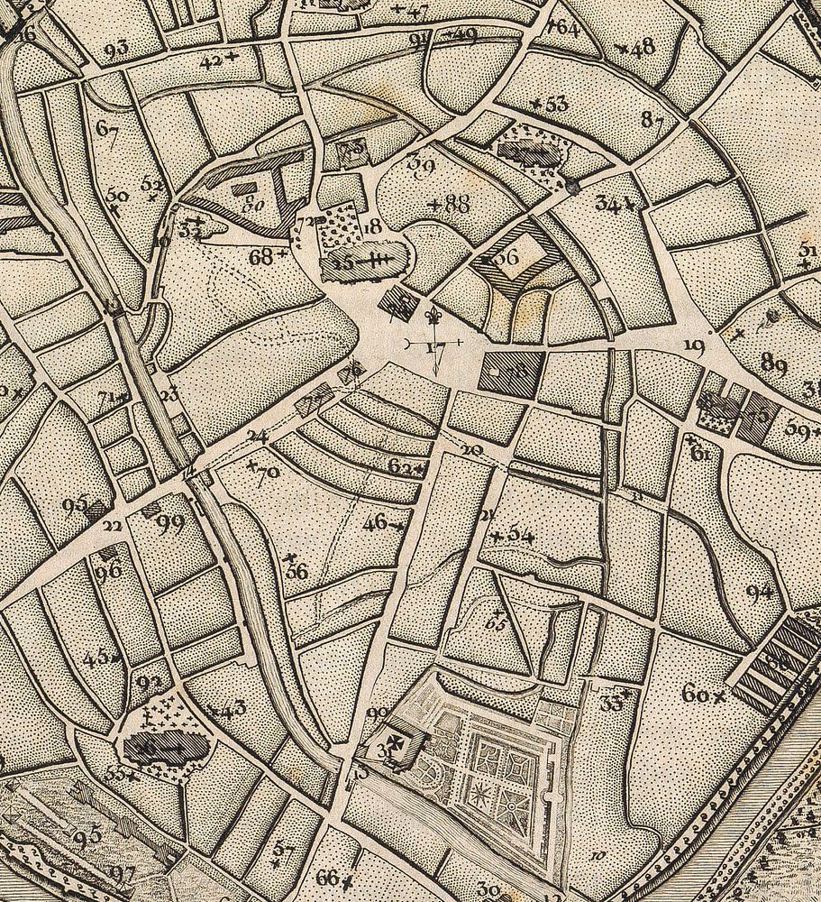 An old map of Mechelen from around 1775. This map is a legal copy of the original that can be seen in the Rijksmuseum in Amsterdam, The Netherlands.