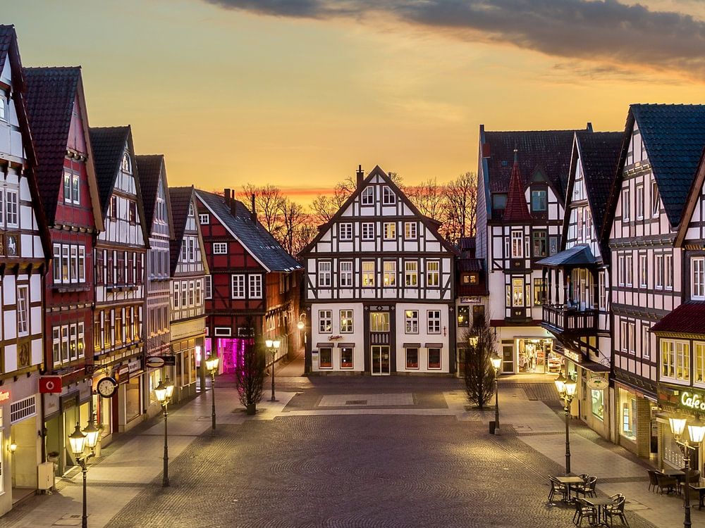 Old town of Rinteln, Germany during sunset