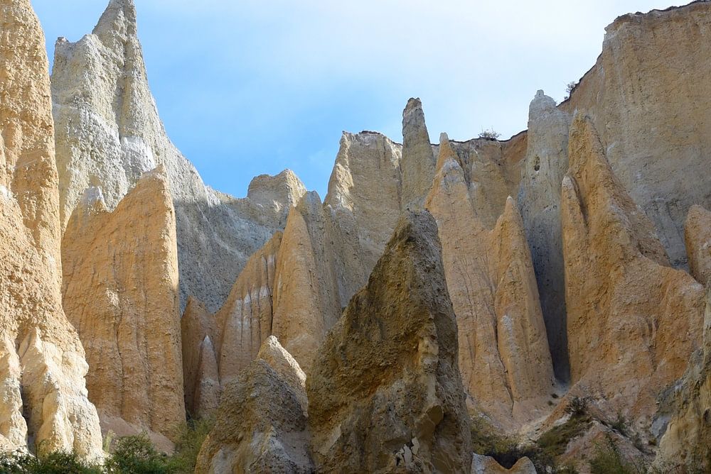 The tall sharp pinnacles are very impressive, and the narrow ravines are fun to walk through and make for some really cool photos. The clay cliffs are said to be almost two million years old and are made up of layers of silt and gravel. Geological activity has pushed the layers up, and after many years of erosion, sharp pinnacles formed. Some of them are up to 30 meters tall.