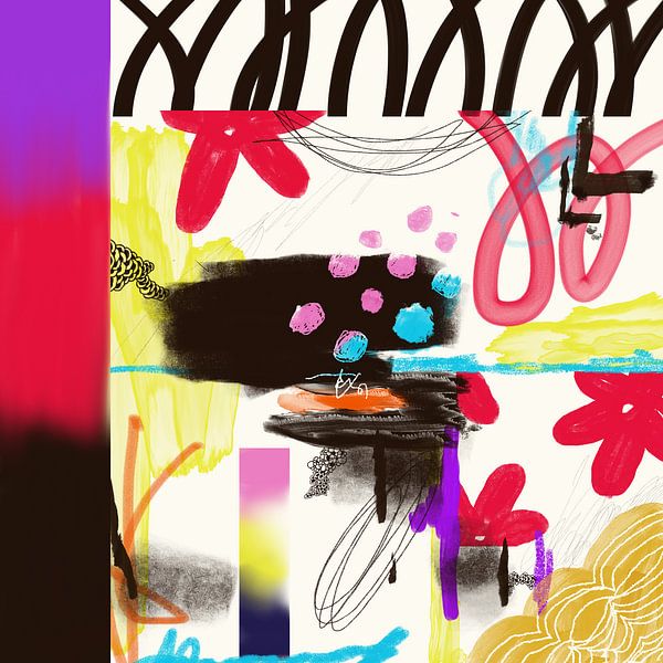 This abstract digital artwork is a visual archive of memories—colors, shapes, and spontaneous marks layered together to form a vivid emotional landscape. Every stroke carries fragments of childhood doodles, playful gestures, and intuitive explorations that merge into a warm, nostalgic atmosphere. The composition captures how memory…