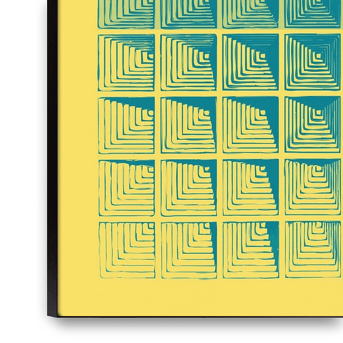 An abstract illustration with geometric shapes as a woodcut with lovely details in trendy colors. A work of art, modern and trendy with a touch of retro style.