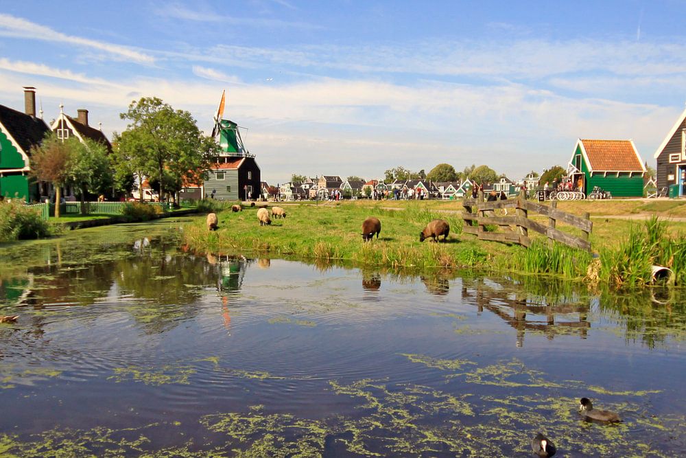 Over het water genieten van de rust en sfeer in Zaanse Schans.
