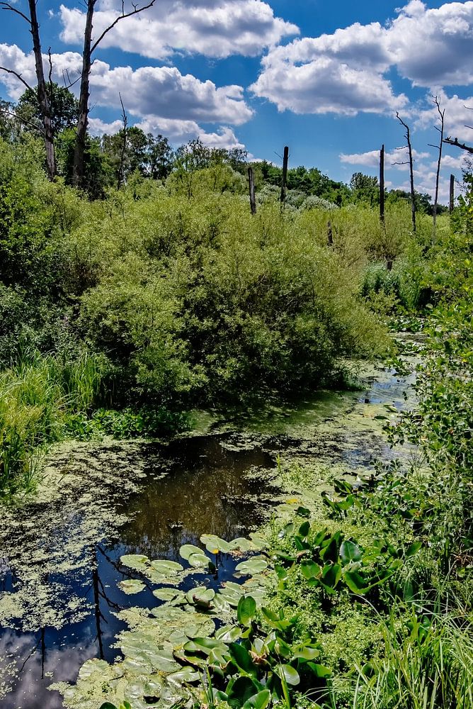 126 square kilometers are drained by the Tegeler Fließ, a 14.5-kilometer-long river that meanders through the Berlin landscape largely in a natural state before flowing into Lake Tegel. Extensive meadows as well as alder and gray willow bushes line the river and form one of the most beautiful natural landscapes in Berlin. The section of the river valley between Arkenberge and the Humboldt Mill has been declared an FFH and SPA area. Thanks to its structural richness, the area is home to a rich bird life, including several EU-protected species. It is an important habitat for amphibian and reptile species. The Natura 2000 site includes the LSG Tegeler Fließ and three nature reserves (NSG Niedermoorwiesen am Tegeler Fließ, NSG Kalktuffgelände am Tegeler Fließ, both in Pankow, and NSG Tegeler Fließ in Reinickendorf).