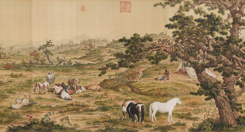 Giuseppe Castiglione: One hundred horses, year 1728. Handscroll, ink and colors on silk.