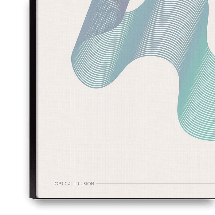 A poster with lines in an abstract shape whose colour gradient goes from violet to blue. The modern print is a great highlight in your living room.