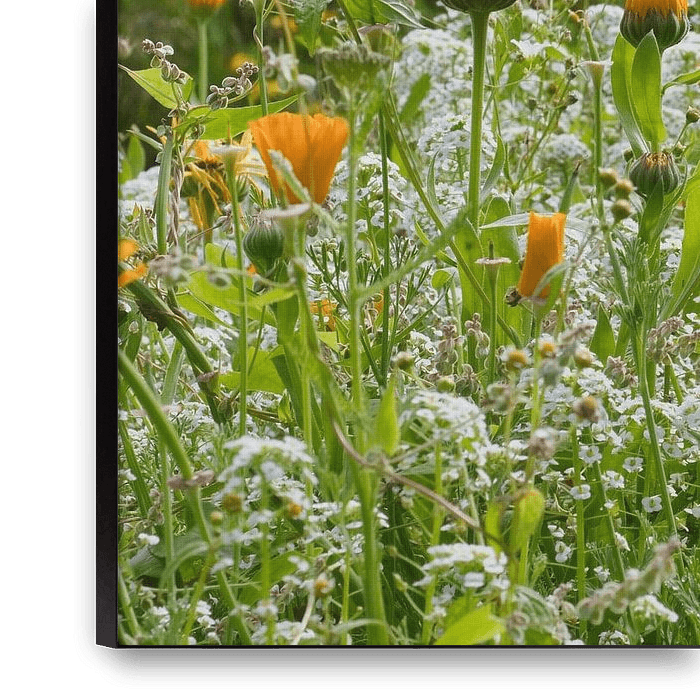 Buy this flower art Orange flowers among low white flowers by Jolanda de Jong-Jansen on canvas, ArtFrame, poster and wallpaper, printed on demand in high quality.