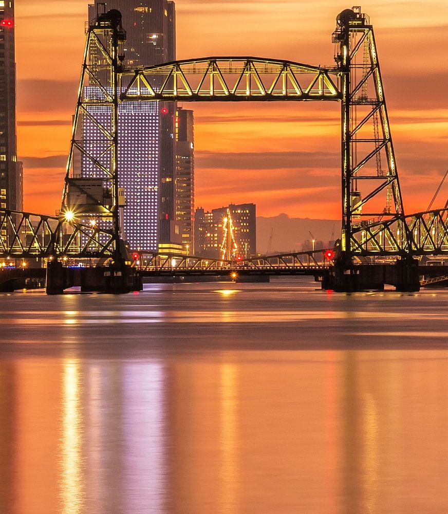 Buy this of Rotterdam Orange sunset in Rotterdam by Ilya Korzelius on canvas, ArtFrame, poster and wallpaper, printed on demand in high quality.