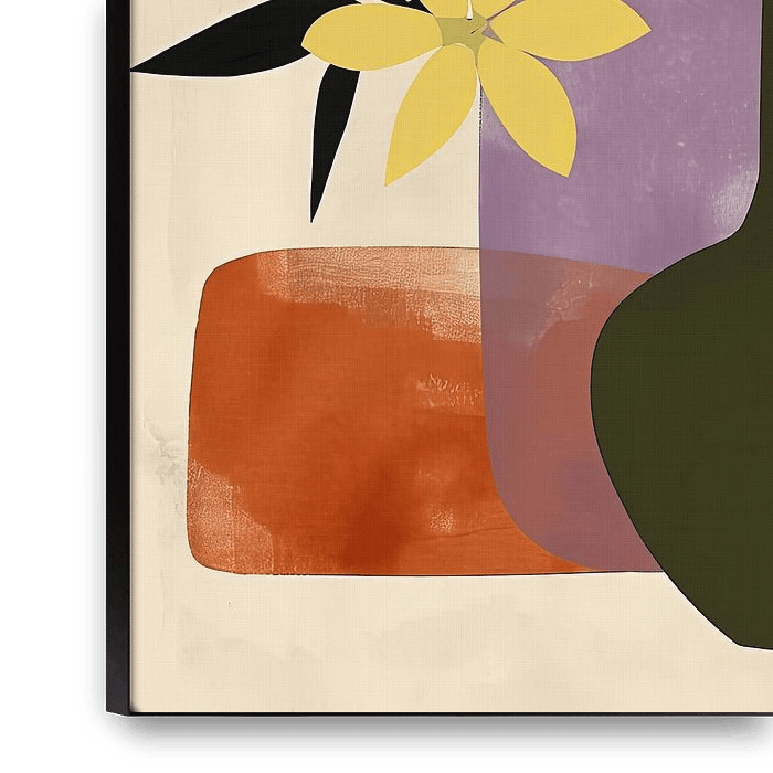 This trendy artwork is an abstract creation that captures the essence of a still life with a fresh, contemporary look.