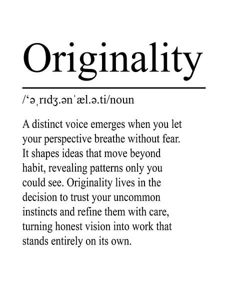Buy this illustration Originality Definition - White by WordsThatInspire on canvas, ArtFrame, poster and wallpaper, printed on demand in high quality.