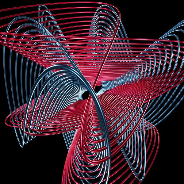 Lissajous figures in three dimensions, dancing with each other, rendered as metallic tubes.