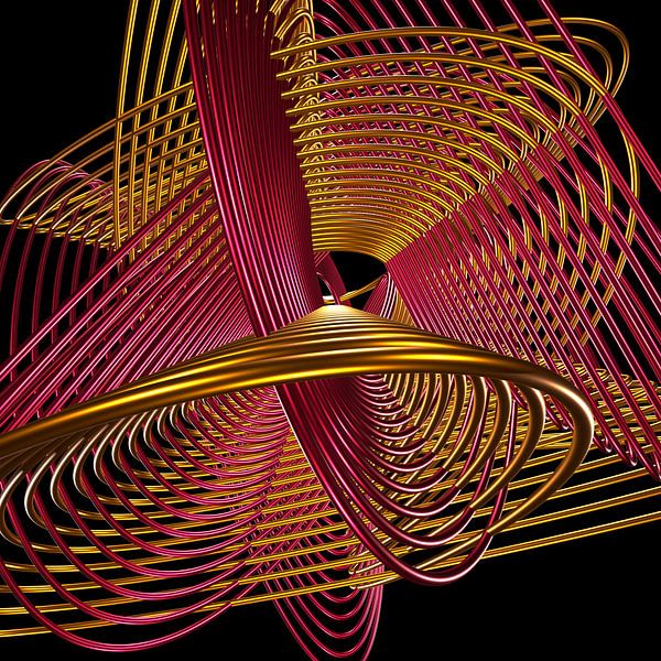 Lissajous figures in three dimensions, dancing with each other, rendered as metallic tubes.