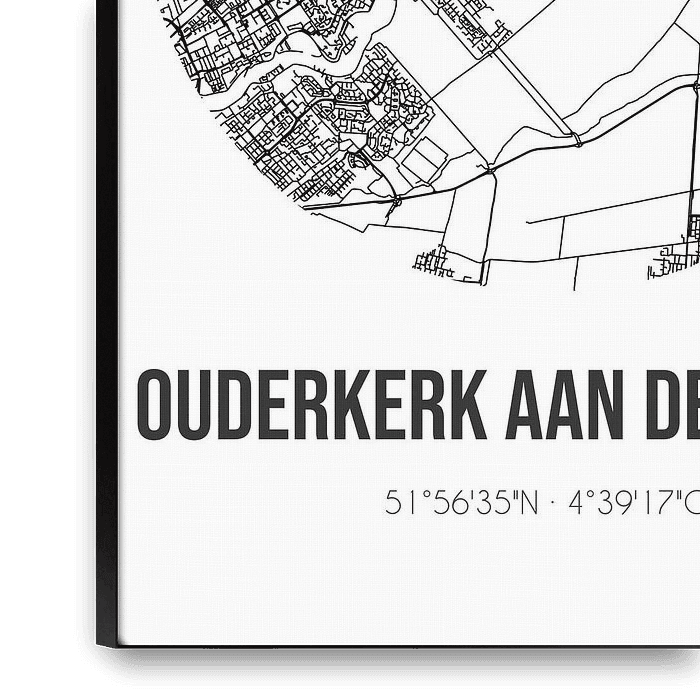 Buy this abstract artwork Ouderkerk aan den IJssel (South-Holland) | Map | Black and White by Prints of Place on canvas, ArtFrame, poster and wallpaper, printed on demand in high quality.