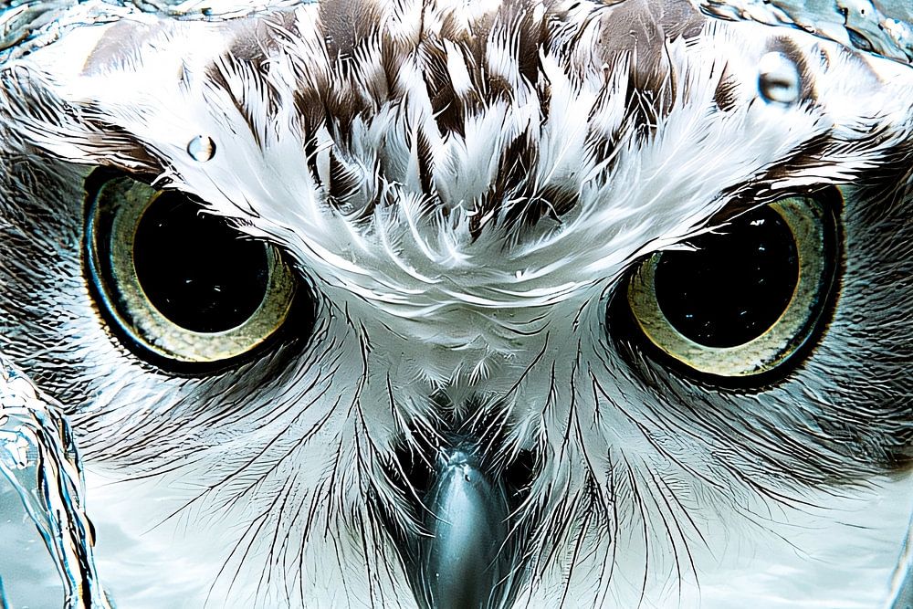 This impressive photo captures a unique moment of an owl surrounded by splashing water, rendered in beautiful hyper-realistic detail. The vibrant colours and dynamic design make this artwork a real eye-catcher for any room. Perfect for lovers of nature and animals, this print adds a touch of modernity and energy to your interior. Ideal for living rooms, offices or other spaces where you want to make a powerful statement. Be inspired by this unique combination of nature and artistic perfection.