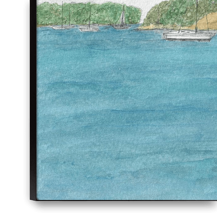This watercolor shows a sailboat in front of the ox island in the Flensburg Fjord between Denmark and Germany