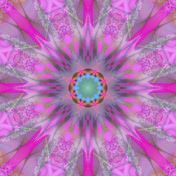 This mandala was created from fractal patterns and kaleidoscopic effects. Each painting has its own healing vibration and opens a new world to the viewer.
