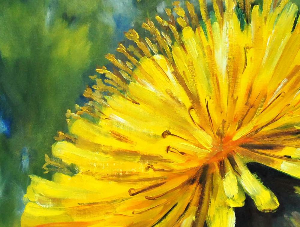 Olieverf op doek. Prachtig onkruid. de bladeren kunnen als salade worden gegeten. mooi kleuren ze de weilanden in het voorjaar.