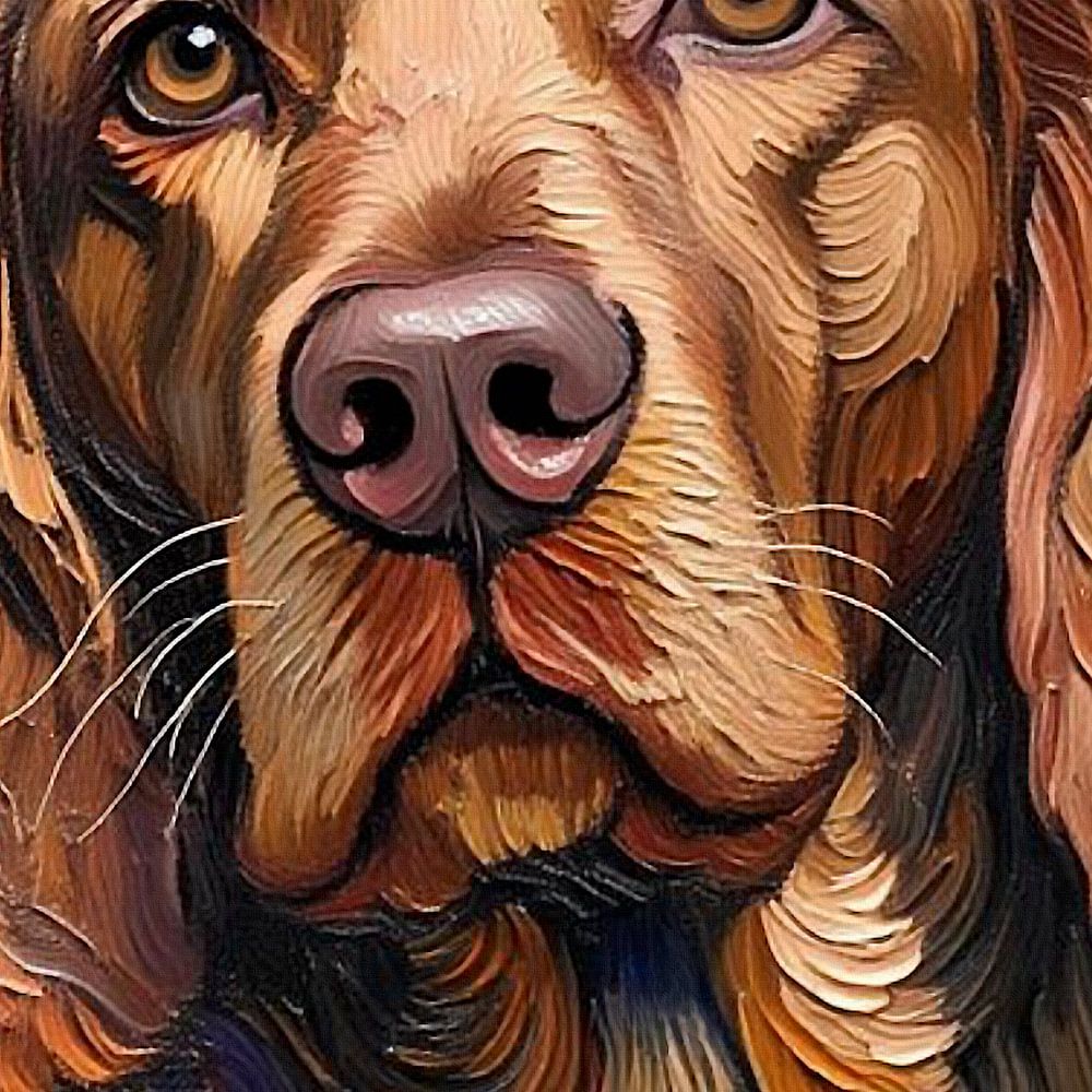 Buy this painting Painted Dog 01 (Irish setter) by Hans Levendig (lev&dig fotografie) as a reproduction on canvas, ArtFrame, poster and wallpaper, printed on demand in high quality.