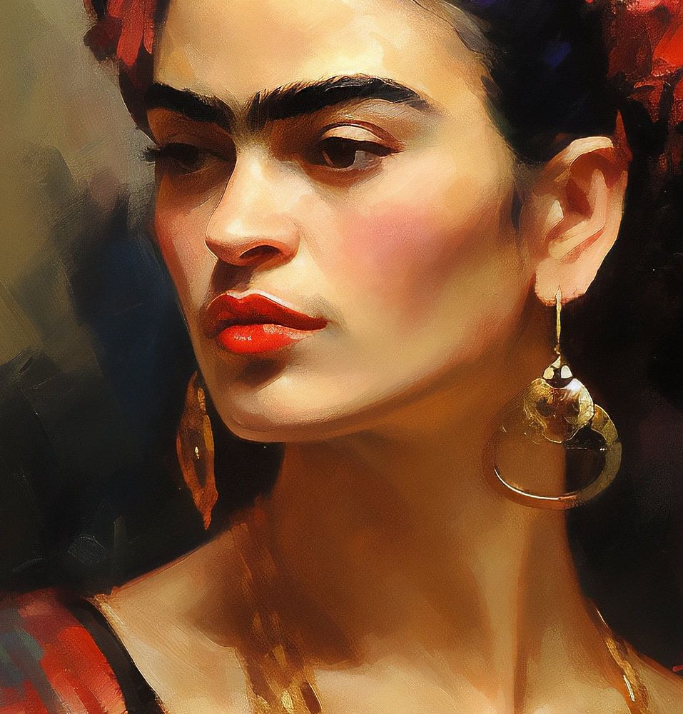 This enchanting portrait of Frida is inspired by the expressive style of the late 20th century. With masterful technique and vibrant colour schemes's capture the essence of Kahlo's unique personality.