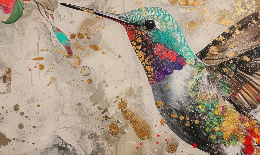 Painting Hummingbird Gold - colourful hummingbird gold accents