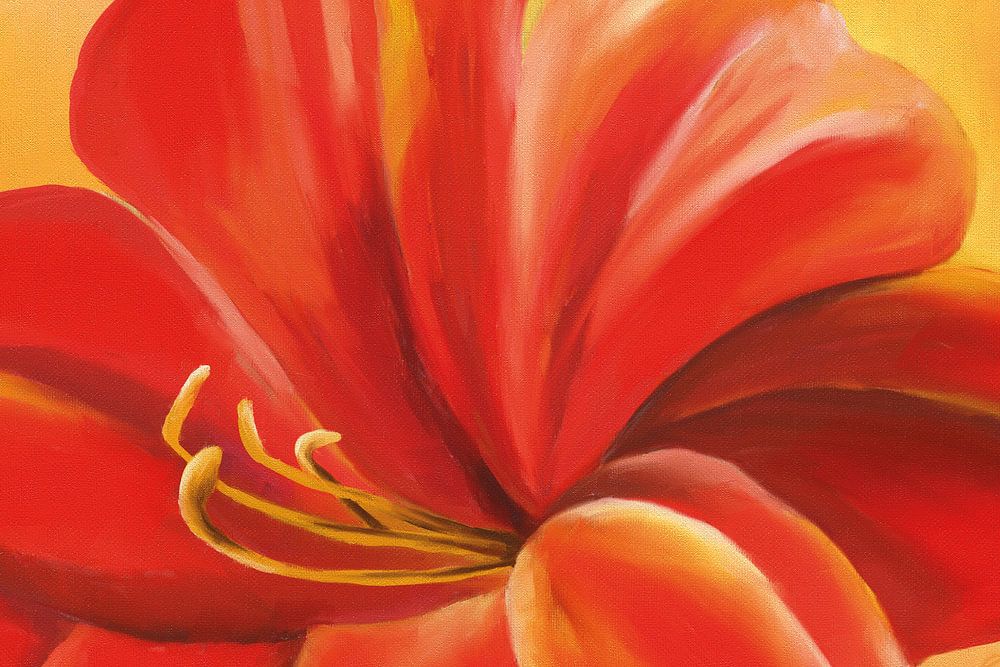 Digital acrylic painting of a single azalea flower in red, with visible brush strokes and canvas texture.