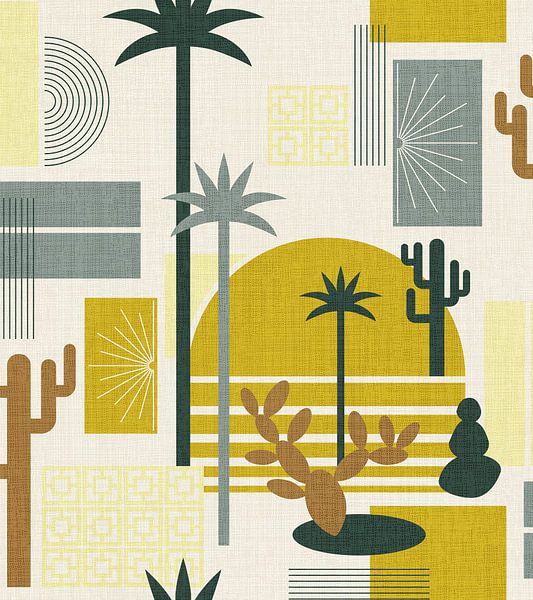 Buy this illustration Palm Springs Geometric Escape Mustard by Alexandra Weise on canvas, ArtFrame, poster and wallpaper, printed on demand in high quality.