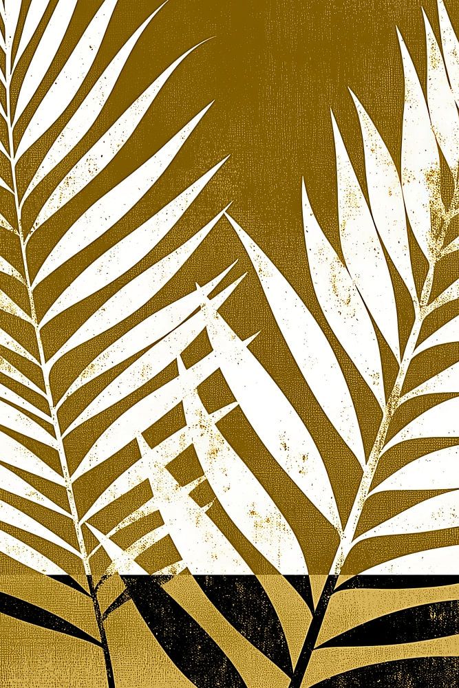Graphic palm leaf in black and white with a modern gold background. Atmospheric and modern. A nice combination with part 1 the reversed version of this image.