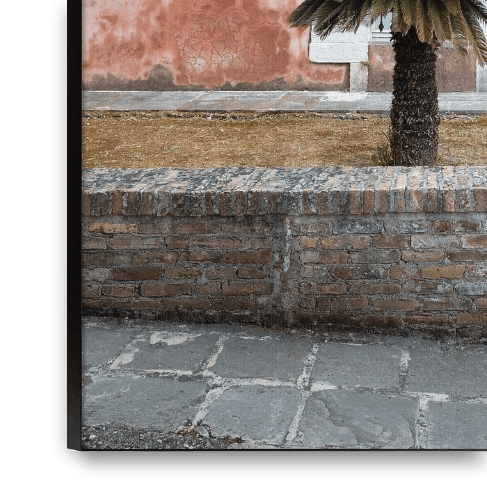 Beautiful palm tree with old pink background at the fort on Corfu Greece. To me, this photo exudes a lot of character because of the old pink wall, which is completely lived in.