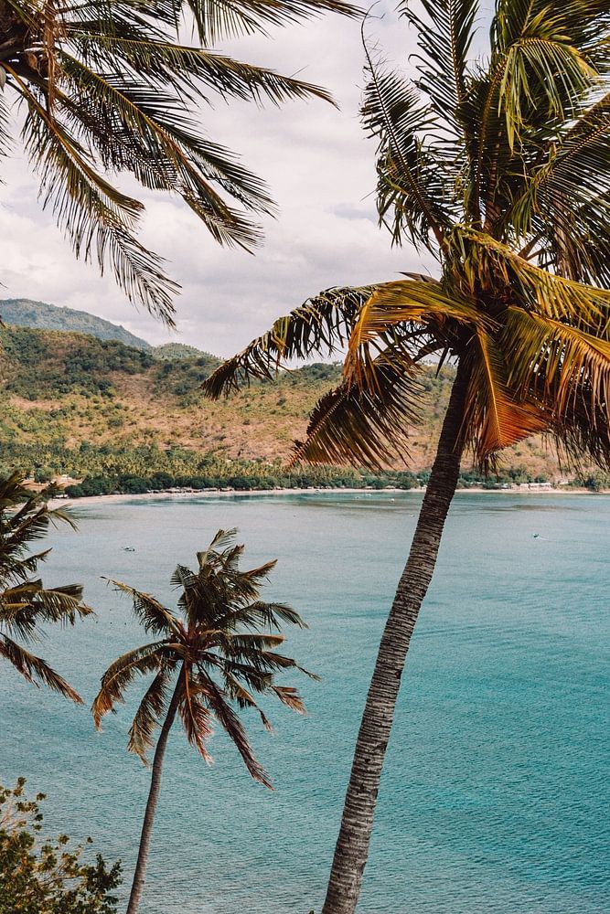About "Palm trees and blue sea on the island of Lombok, Indonesia"