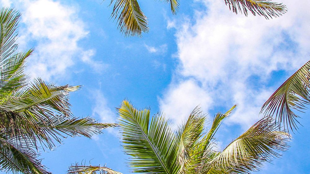 Palm trees seen from below, on a beach in Colombia