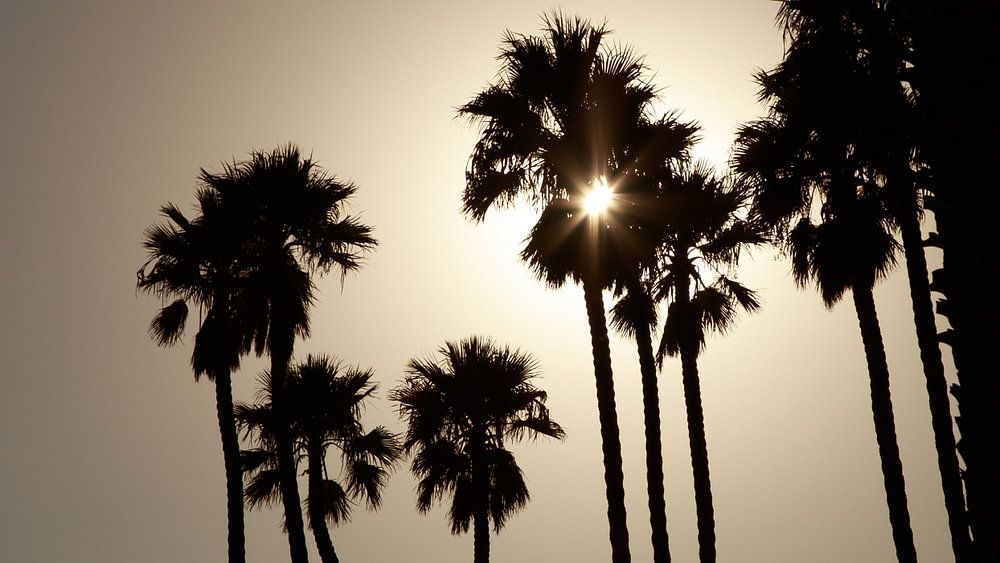 This photo was taken during a tour of the United States. On the west coast of California is Santa Barbara. With the sun high in the sky, I chose to take a photo where the sun is behind the palm trees. This creates silhouettes of the palm trees.
