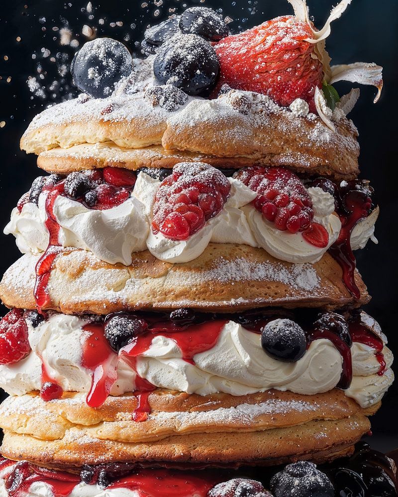 Pancake tart with fruit. Super fun to hang in the kitchen, for example. Choose your own size and material for this work and make it a real eye-catcher in your interior.