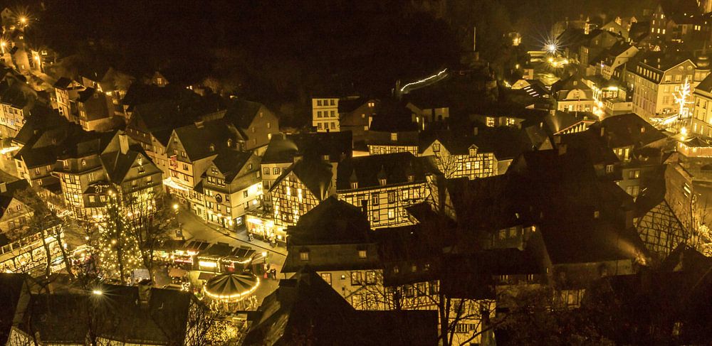 Panorama of the old town of Monschau at night by Gottfried Carls