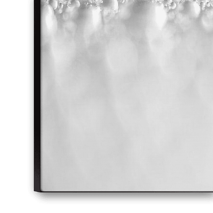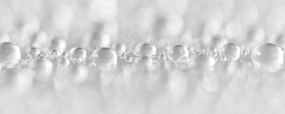 This photo of a panorama of water droplets in mainly subtle light grey - white tones brings a serene beauty of nature directly into your interior!