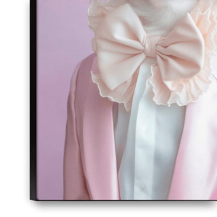 An adorable papillon with majestic, bushy ears and a radiant, friendly face adds an unexpected touch to the classic look of an elegant evening outfit. Dressed in soft pink, he combines the charm of a fashion icon with the playful curiosity of his nature. His canine countenance steals the limelight and brings a smile to everyone's face.