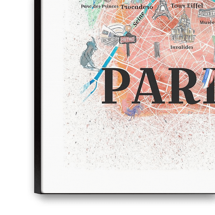 Buy this painting Paris France Illustrated Map with Main Roads, Landmarks & Highlights by Markus Bleichner as a reproduction on canvas, ArtFrame, poster and wallpaper, printed on demand in high quality.