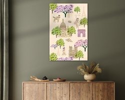 Be enchanted by The Magic of Paris Spring, a playful and dreamy artwork that brings to life the atmosphere of Paris in bloom. In this cheerful illustration, cute little dogs stroll through charming Parisian streets, past blooming cherry blossoms, colourful cafés and soft pink skies. It's like wandering through the city of love for a moment - but with a touch of childhood fantasy and a pinch of springtime magic.