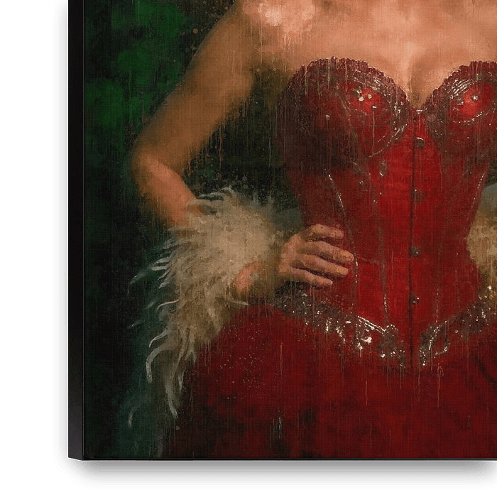 Enter the world of glittering lights, red velvet curtains and timeless allure. Paris Glamour in Moulin Rouge Style is a digital painting that captures the atmosphere of iconic Parisian nightlife, with a nod to the elegant and mischievous world of cabaret.