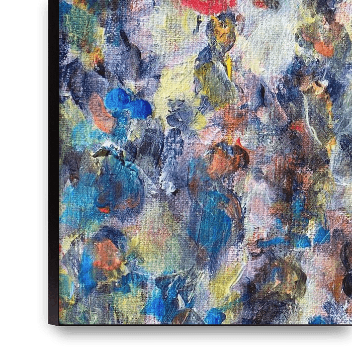 A festive painting with a lot of people, celebrating, a mass full of colors. Soon we will see these crowds again. A beautiful wall decoration. Decorative art.