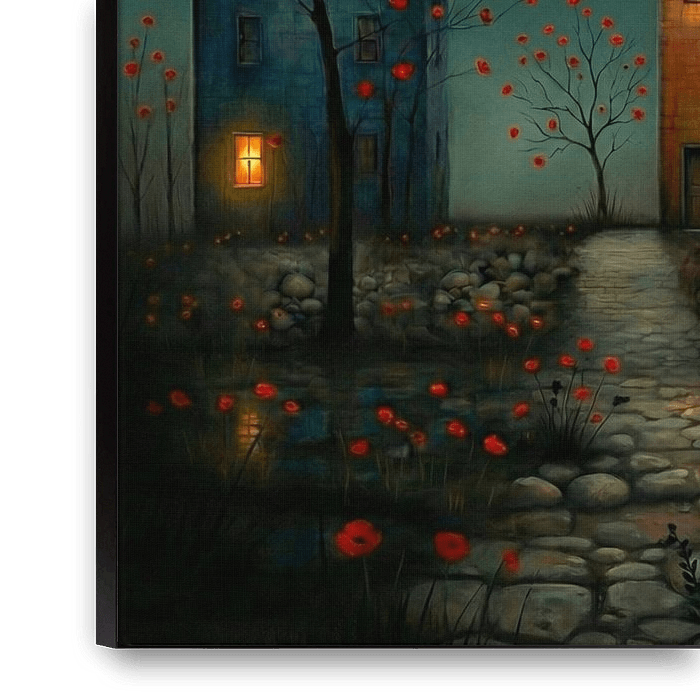 The cobblestones are cold and deep, Where crimson poppies wake from sleep. Beneath a sky of heavy teal, The silence acts as stone and seal.