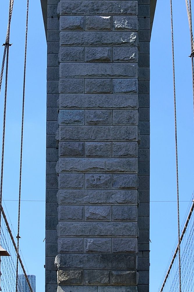 Passing the first pillar on the Brooklyn Bridge in New York, USA. Finally some shade as the heat was getting unbearable. Also time to admire the amazing structures.