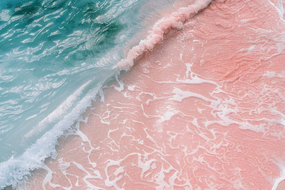 This stunning image of a pink sandy beach with turquoise blue water captures the essence of tropical beauty. Perfect for lovers of beaches and tropical landscapes, it brings a relaxing and exotic atmosphere to any room. The soft pastel colours and natural shapes make this work a highlight in the category of nature motifs and landscape photography. Bring a piece of paradise into your home and be inspired by the magic of tropical beaches.