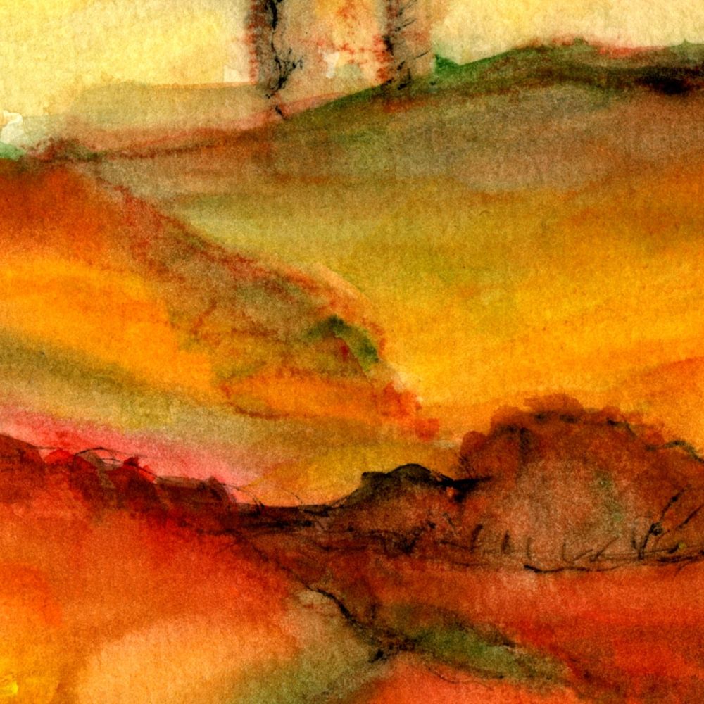 Painting,Soft,Light,Contemporary,Modern,Decorative,Abstract,Impression,Tranquility,Poster,Impressionism,Nature,Soft,Warm,Silence,Colourful,Cheerful,Way,Mountains,Meadow,Nature,Sky,Autumn,Watercolour,Figurative,Landscape,Autumn