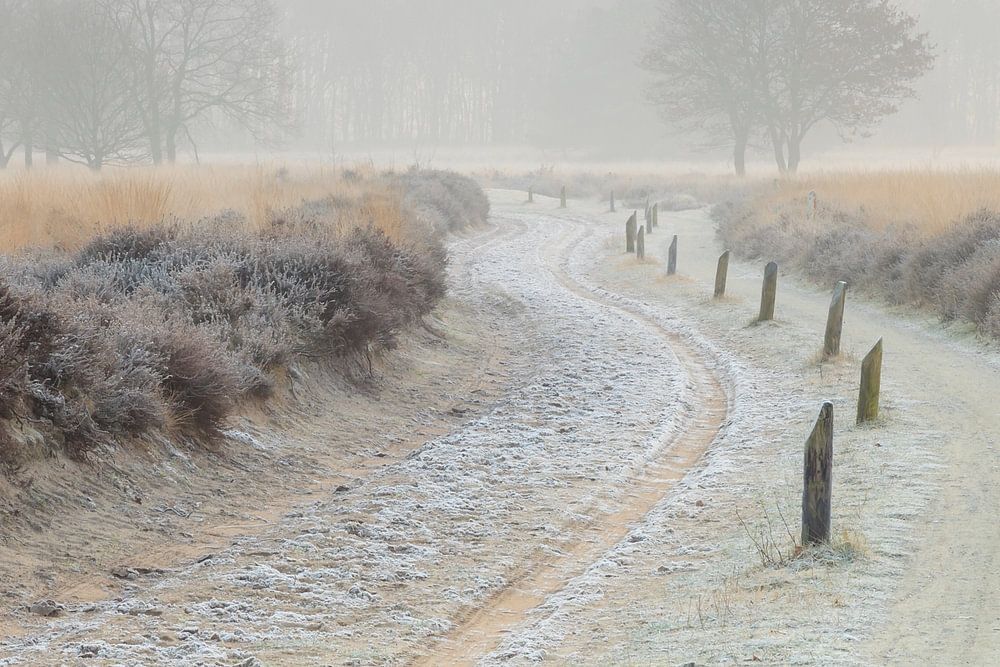 Always good, walking or cycling on an early winter morning on the Balloërveld, the great silent heath. A little night frost completes it. Beautiful lines lead me to the trees in the distance.