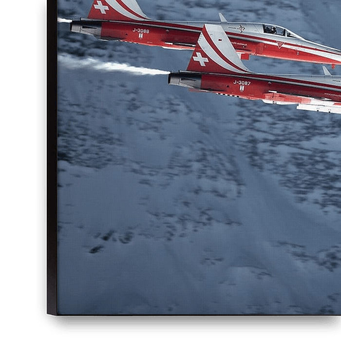 The world famous demo team Patrouille Suisse of the Swiss Air Force during the annual airshow in Wengen for the Lauberhorn races in the Bernese Oberland. The Patrol Suisse flies the Northrop F-5E Tiger.