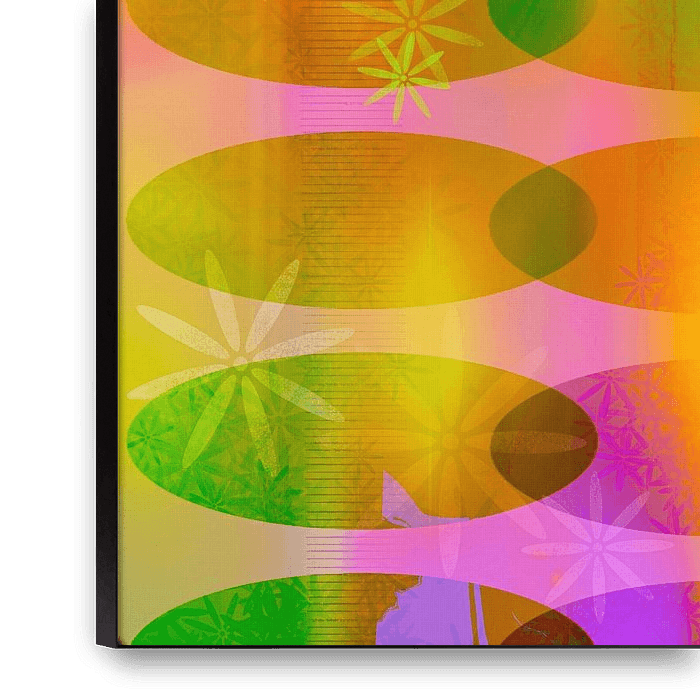 Your chosen art on canvas, stretched in an aluminum frame. Quick and easy to change for a fresh look and exactly as you want it.