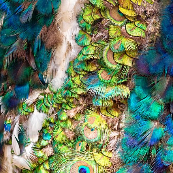 Close-up of a Maori costume in New Zealand with peacock feathers.