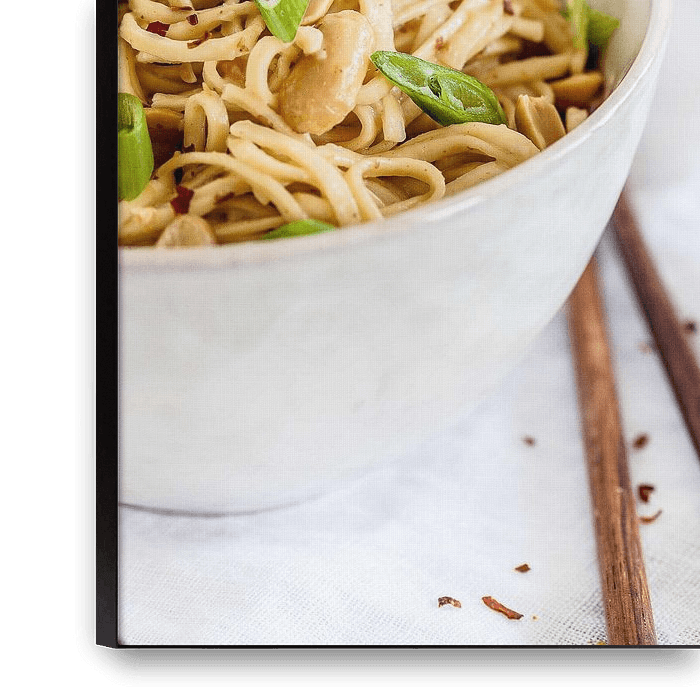 Buy the photo Peanut noodles with chilli and spring onion by Nina van der Kleij on canvas, ArtFrame, poster and wallpaper, printed on demand in high quality.