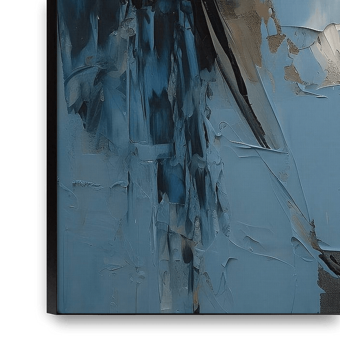 This striking portrait consists of bold, impasto strokes that carve out the delicate features of a pensive face. The cool blues and neutral tones suggest a depth of thought, while her intense gaze draws the viewer into a quiet conversation.