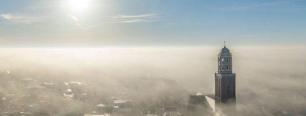 Peperbus church tower in Zwolle above the fog by Sjoerd van der Wal Photography