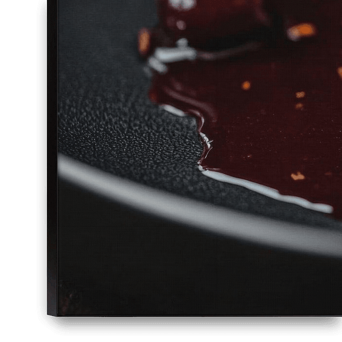 An appetising masterpiece: tender meat with a delicate cherry sauce, complemented by freshly scented sprigs of thyme. The harmonious composition of colours and textures awakens the gourmet in everyone. This work of art is perfect for the kitchen or dining room and brings a touch of elegance and culinary flavour to any room.
